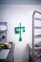 The grip band module is designed for storing cleaning tools without a hanging hole. Slide the grip band module onto the supplied double-base/spacer from the left or right side. The grip module can hold products with a diameter of 28-33 mm. The grip band module is easy to disassemble for cleaning or replacement.