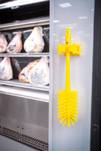 The grip band module is designed for storing cleaning tools without a hanging hole. Slide the grip band module onto the supplied double-base/spacer from the left or right side. The grip module can hold products with a diameter of 28-33 mm. The grip band module is easy to disassemble for cleaning or replacement.