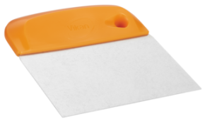 Vikan’s Dough Cutter/Scraper is a baker’s best companion. It cuts and handles dough, removes sticky messes that would clog a brush, and easily deals with burnt-on foods on tables and cutting boards. Essential for food industry, including processing plants, commercial kitchens, restaurants, and supermarkets.