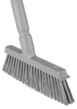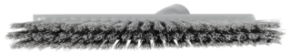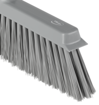 The split bristle angle broom head is designed to handle fine particles like dust, flour, and powdered sugar. The soft/split bristles gently sweep away these powders without leaving residues. Made of FDA-compliant materials