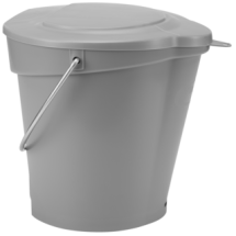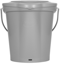 This durable 6-litre bucket can be used for cleaning or food storage. The bucket has a wide drip-free spout, a sturdy stainless steel hanger, and a bottom hand grip that is raised from the base and calibrated for a variety of measuring units. The flat side prevents spillage, and the bucket has its own wall bracket (16200) for storage.