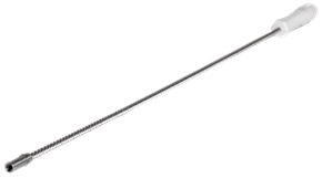 A flexible rod for cleaning curved pipes such as sight-glasses on large tanks and transfer hoses. Can be used with Vikan tube cleaner heads (5354x, 5356x, 5365x, 5368x and 5391x). Connected by a screw thread and can be extended in increments of 750 mm by attaching product no. 5346.
