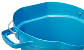 An ideal station for mixing ingredients that are stored in 20L or smaller Vikan buckets. Perfect for solid or liquid ingredients, this station is large enough to meet all your mixing needs, yet small enough to lift and transport. A bottom handle and a rounded rim and lip also allow for ergonomic, no-spill lifting and pouring. Interior contains durable beveled measurements.